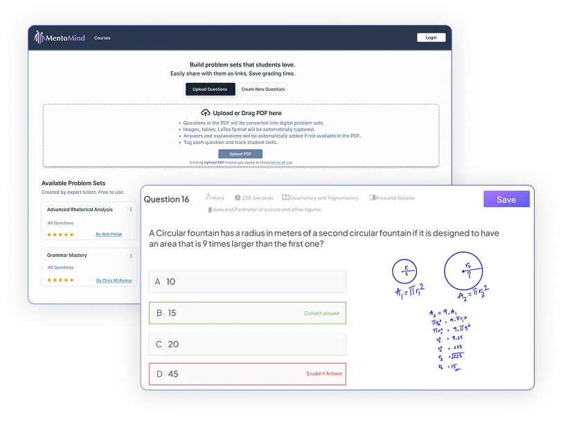 • Tutor analytics dashboard – See question-level performance reports and common mistakes
