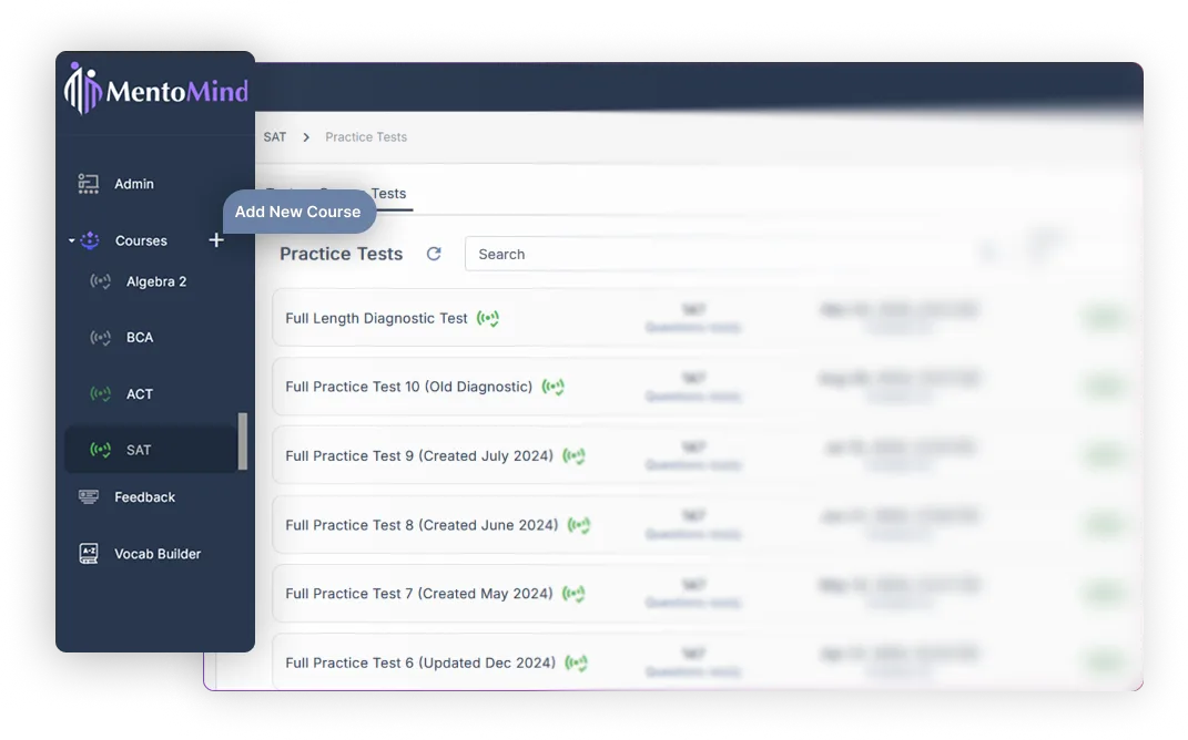 Pick from ready-made courses, add your own practice questions and tests, build a question bank from PDFs, and generate new items when needed.
